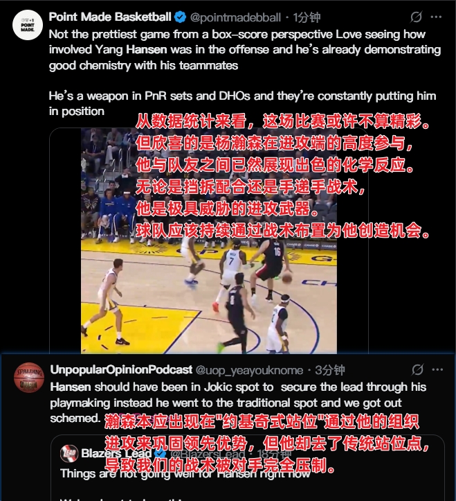 2025-10-09 16:10:08持球时间不多!美网友:杨瀚森极具威胁开拓者应该多为他布置战术