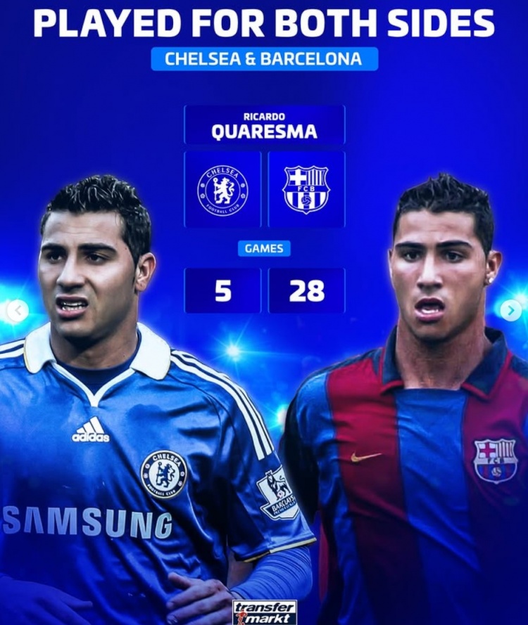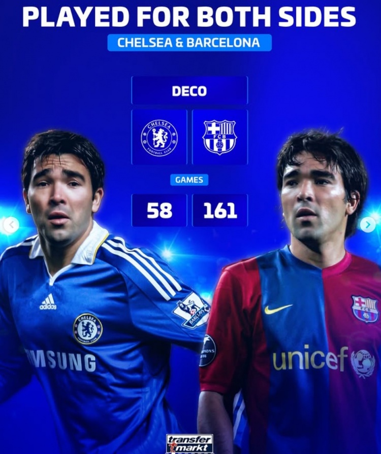 11月26日讯 切尔西将在本轮欧冠焦点战迎战巴萨,《转会市场》也盘点了效力过两支球队的多位知名球员: